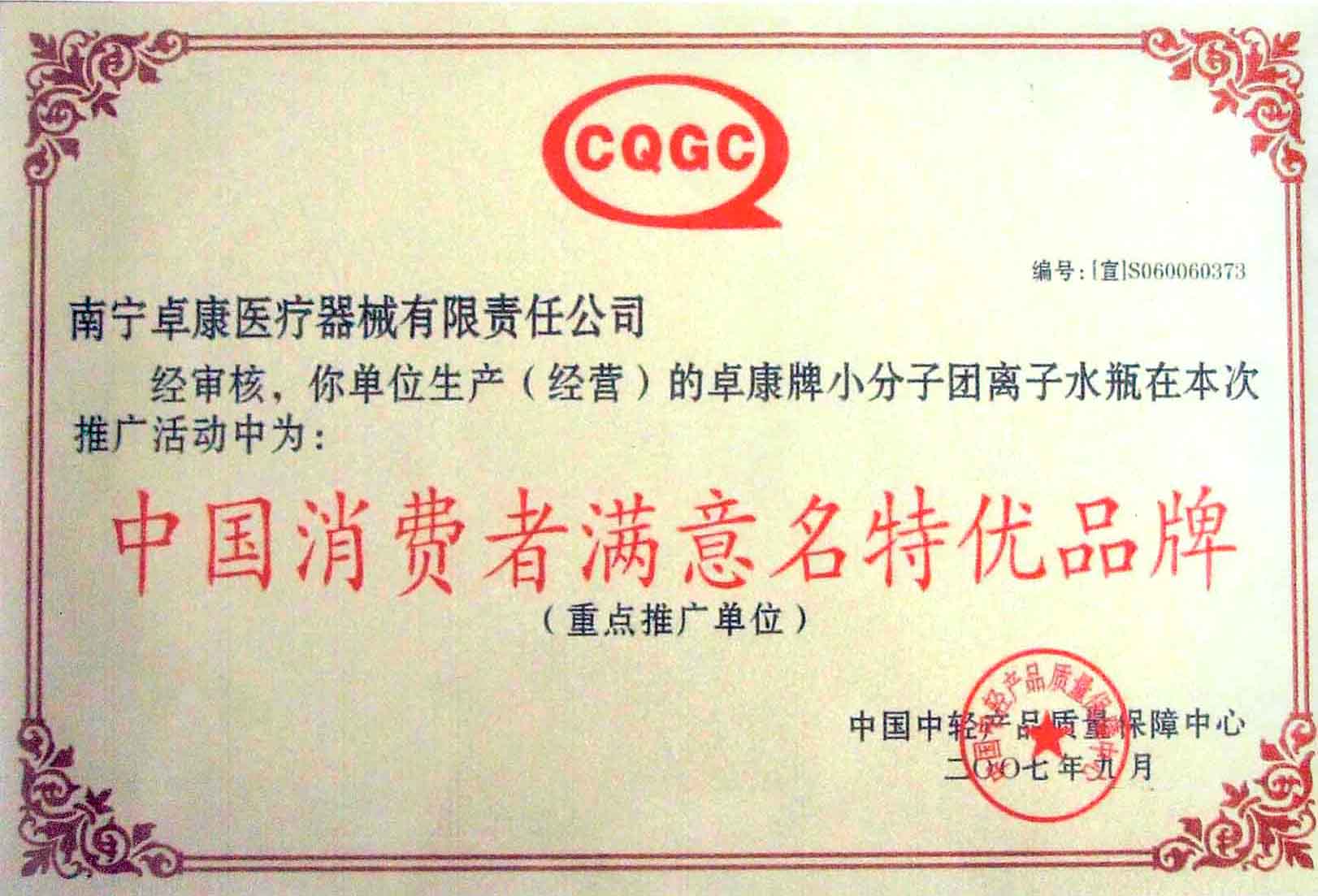 卓康牌離子水瓶榮獲中國(guó)企業(yè)名優(yōu)產(chǎn)品[點(diǎn)小圖見大圖]、中國(guó)著名品牌稱號(hào)[點(diǎn)小圖可見大圖]